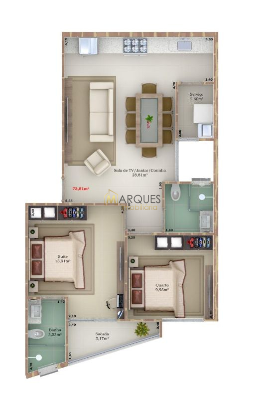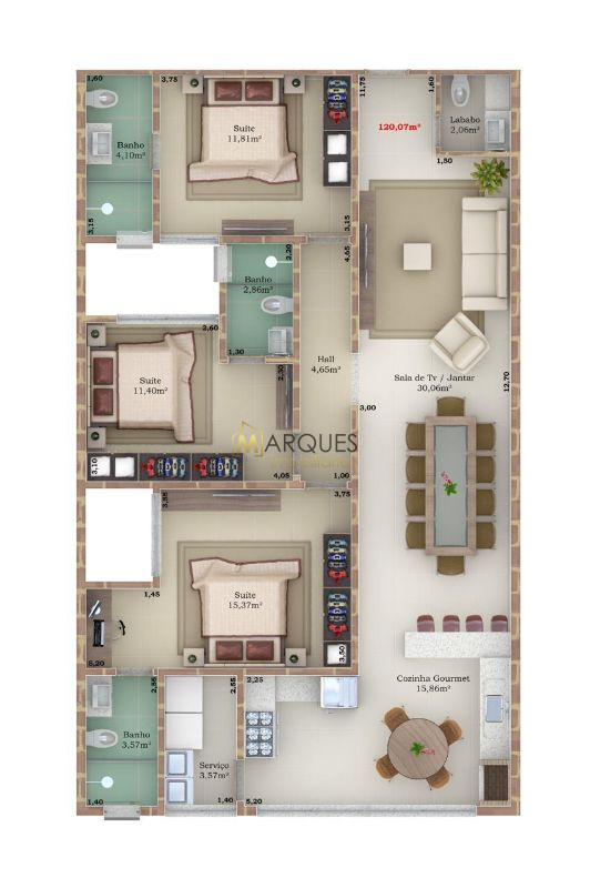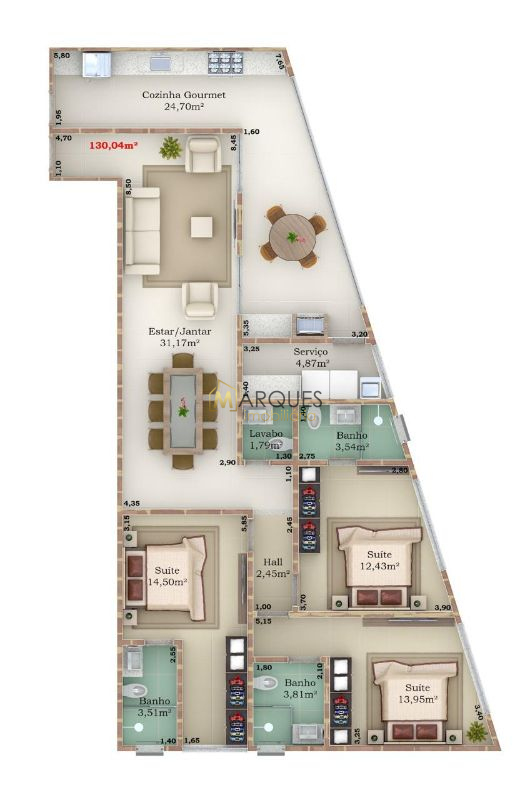 Apartamentos com áreas flexíveis de 70 a 130 m², ideais para diferentes layouts e necessidades