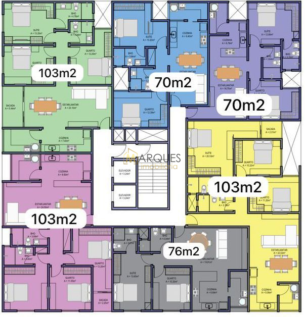 • Plantas de 70m², 76m² e 100m²